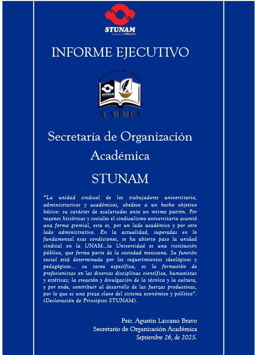 Informes presentados por cada una de las secretarías que conforman el Comité Ejecutivo del STUNAM y de las Comisiones Mixtas y Autónomas.