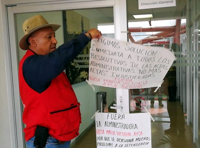La delegación sindical de ese centro de trabajo, integrada por los compañeros Ricardo Sánchez Rodríguez y Marco Antonio Rey Cruz, nos comentaron que desde su llegada la administradora provocó el descontento entre los compañeros de base burlándose y jactándose cínicamente de que los documentos y el sindicato no le pueden hacer nada, puesto que está “muy bien recomendada” ya que, según dice, la apadrina el Secretario Administrativo de la Universidad.