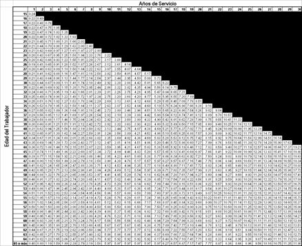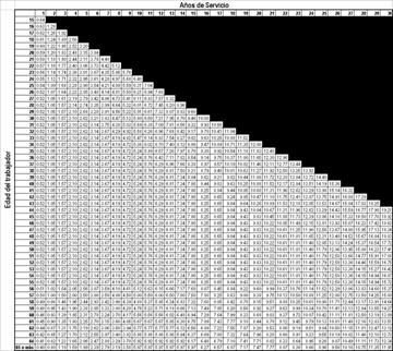 determine conforme a la tabla siguiente: